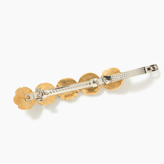 Treat yourself to some flowers that are always in bloom. With the shiniest gold and organic petals, these barrettes are sure to shine with every move you make.